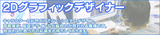 | 【条件】 | Photoshop7.0以降を使い、2Dグラフィック作業を遂行できる方【必須】 |